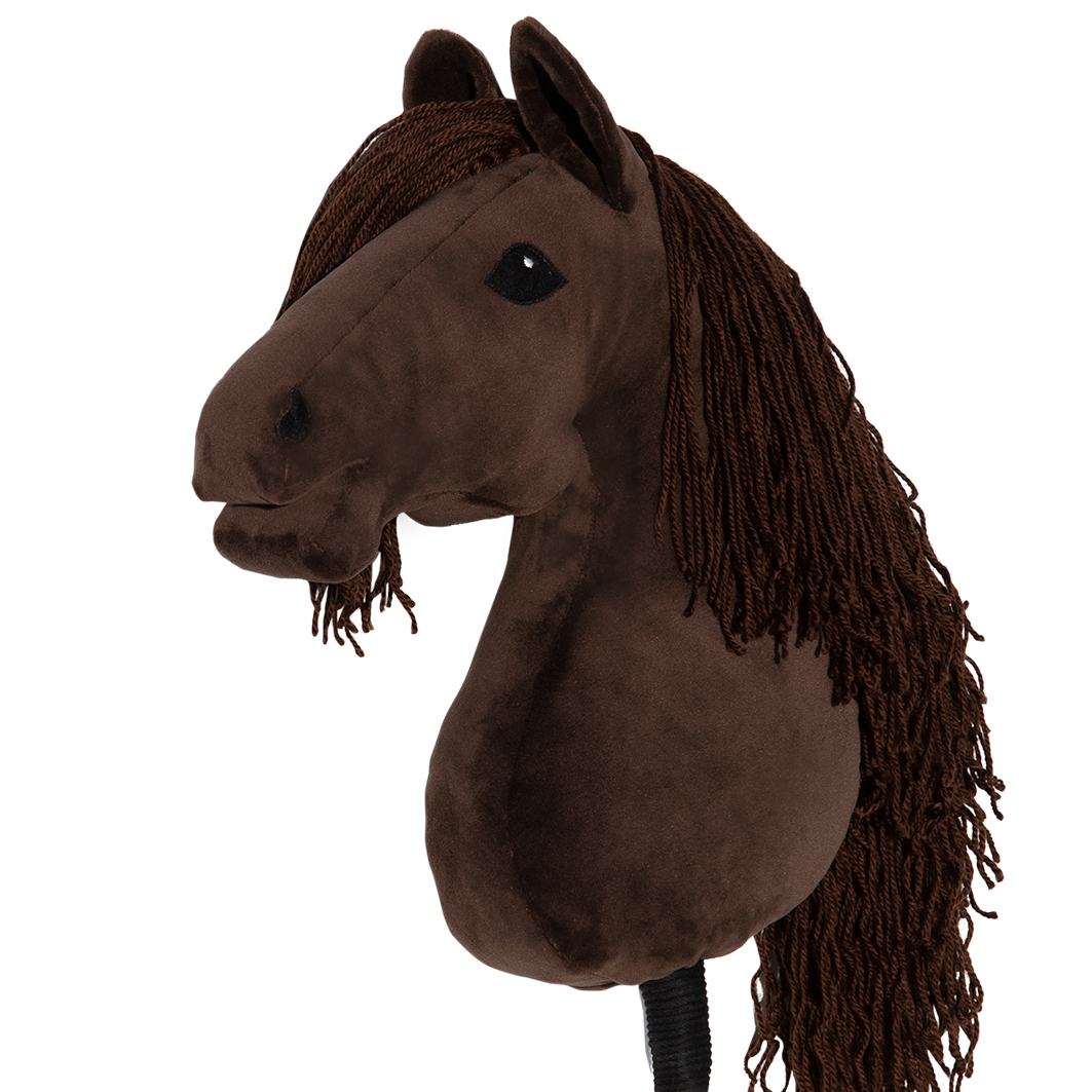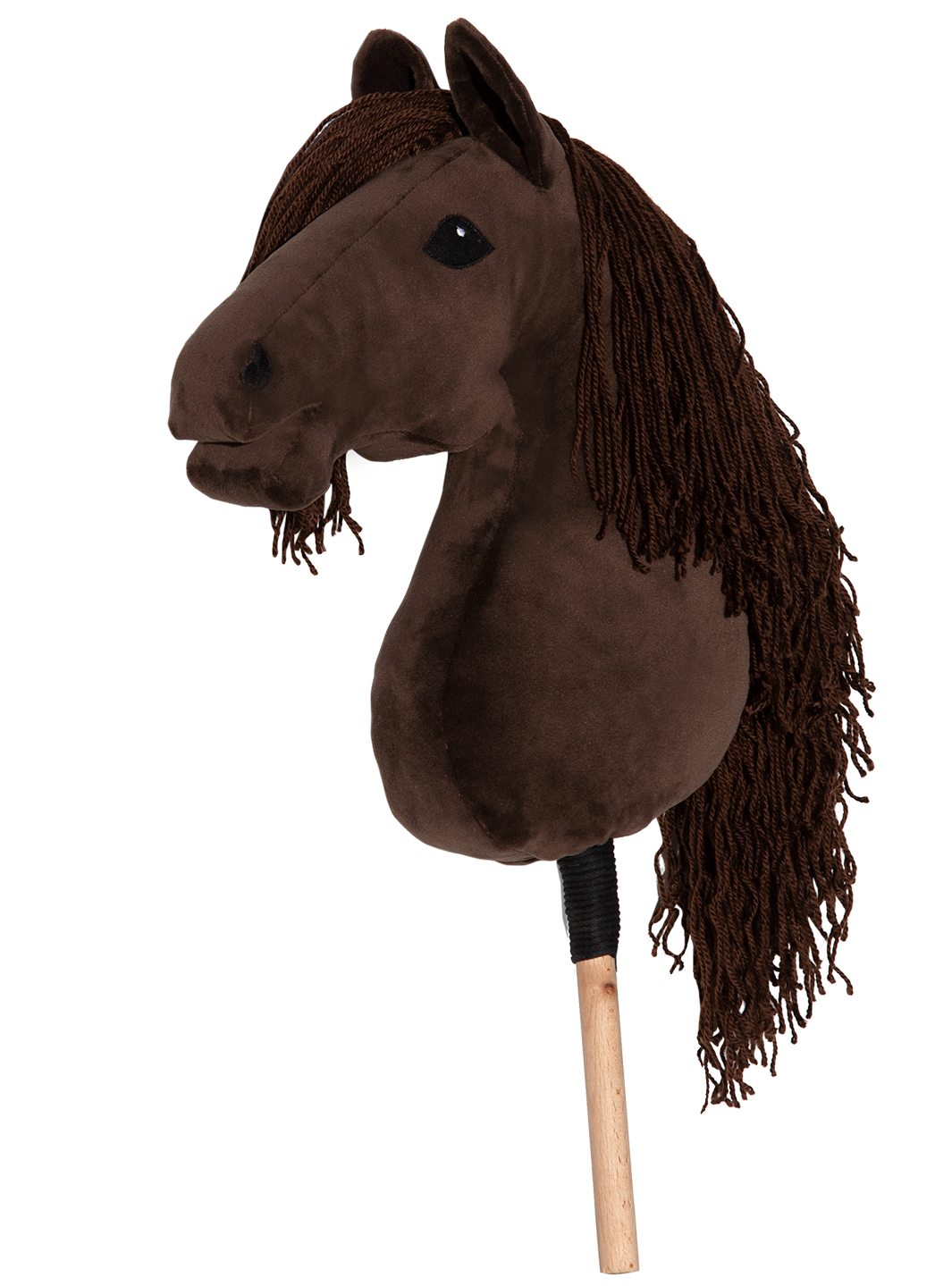 En stilfuld hobby horse i mørkebrun kaffefarve. Et perfekt valg for rideentusiaster og samlere af håndsyede heste.